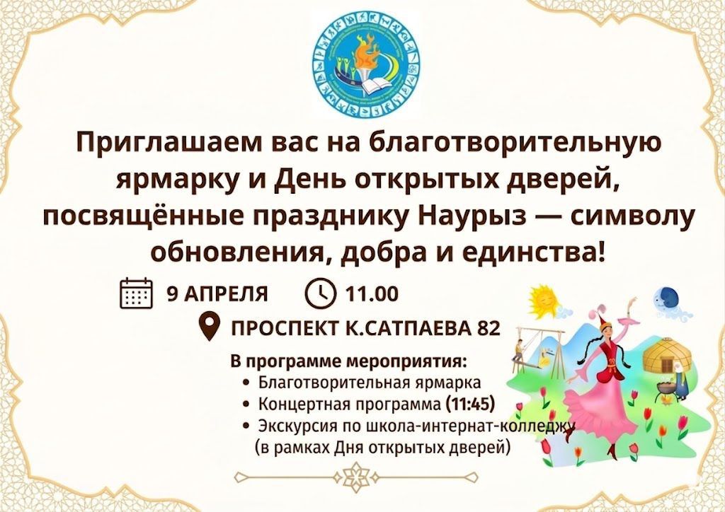 Восточно-Казахстанская областная специализированная школа-интернат-колледж олимпийского резерва для одарённых детей в спорте приглашает жителей и гостей города принять участие в благотворительной ярмарке и дне открытых дверей.
